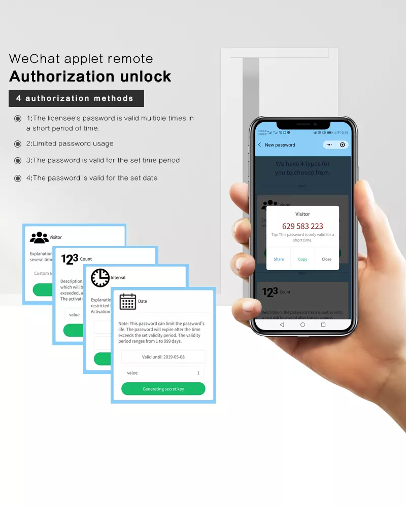 Método de desbloqueo: Huella dactilar, Tarjeta RFID, Contraseña, App,