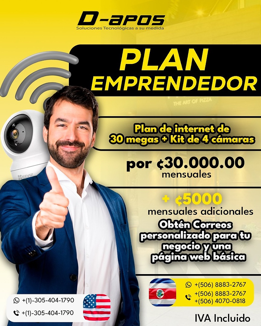 - Plan de Internet: 30 megas de velocidad para mantener tus operaciones siempre conectadas.